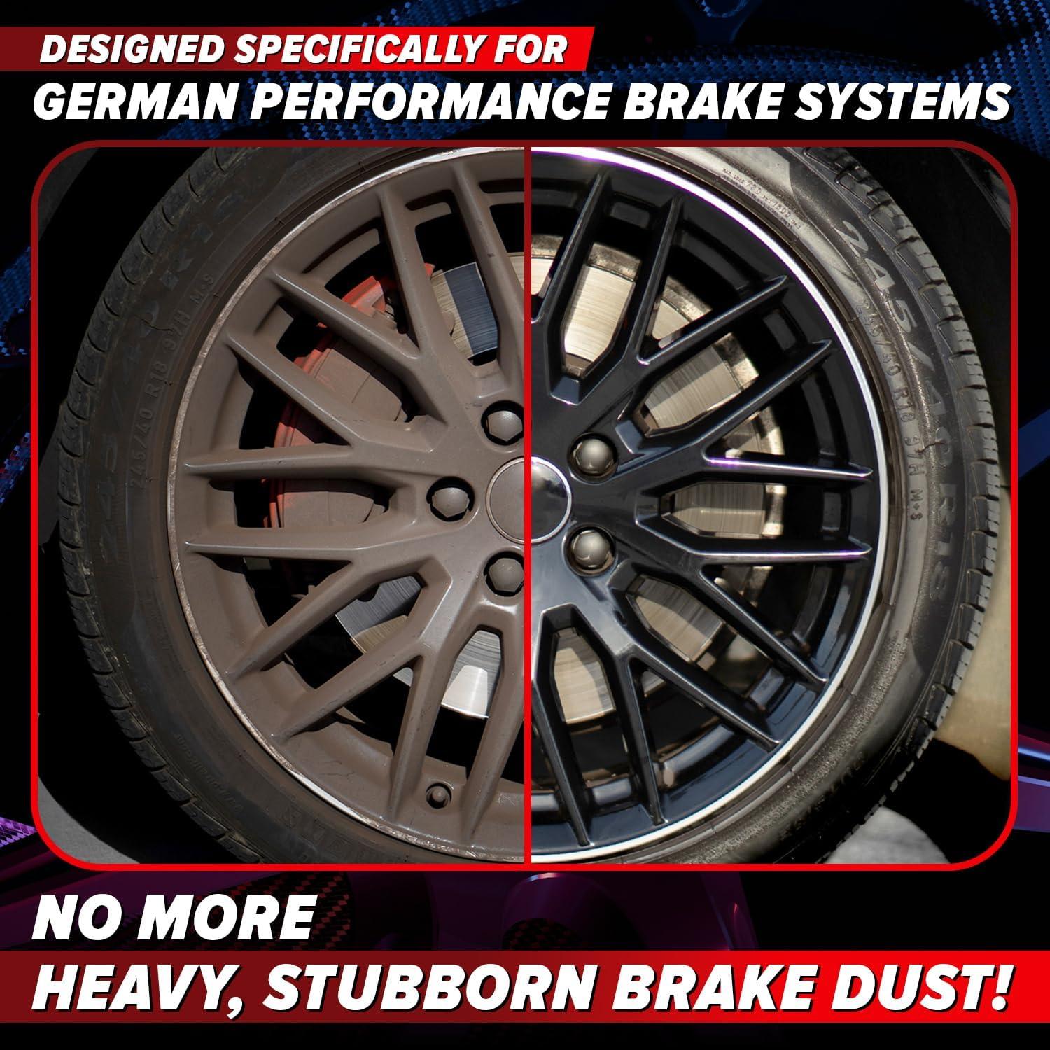 ENGINEERED FOR GERMAN PERFORMANCE CARS – PERFECT FOR BMW, MERCEDES, AUDI, VW & PORSCHE – Specially formulated to handle the extreme brake dust from German performance brake systems. Trusted by enthusiasts to clean safely and effectively without damage.